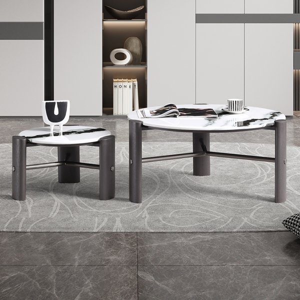 实木贴皮框架+不锈钢拉杆+熊猫白大理石