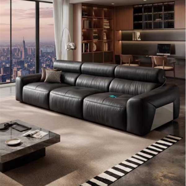 中厚头层牛皮接触面+配皮中厚生态真皮+高回弹海绵+羽绒填充+俄罗斯松木内架+55分电镀枪黑圆脚
