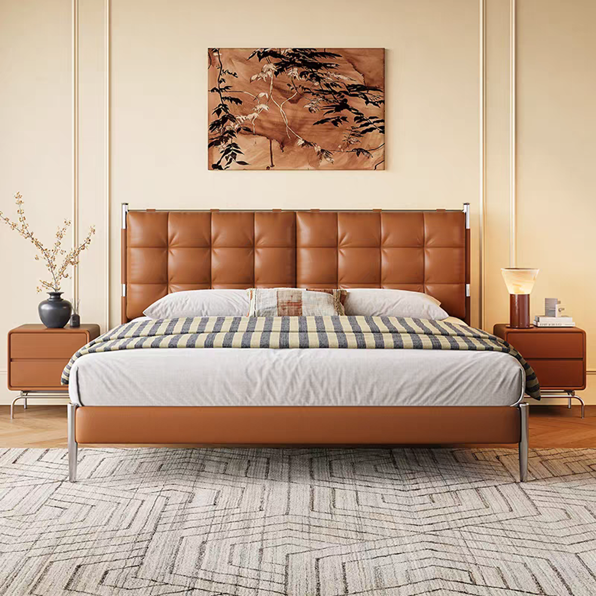 接触面头层真皮+实木内框+高密度海绵+10公分钢木排骨架+不锈钢框架