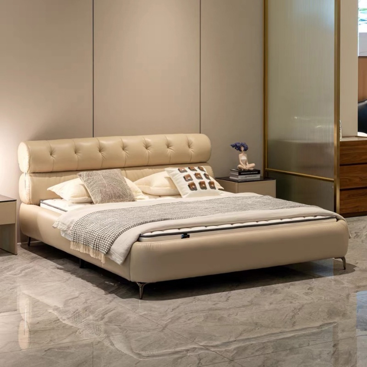 接触面头层真皮+实木内框+高密度海绵+10公分钢木排骨架+五金脚