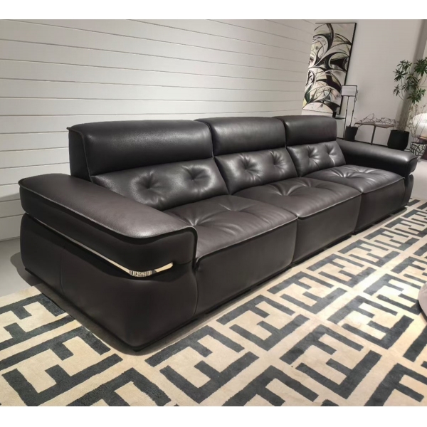 2.0厚头层牛皮接触面+配皮2.0厚生态真皮+高回弹海绵+羽绒填充+俄罗斯松木内架+5分黑色碳素钢脚