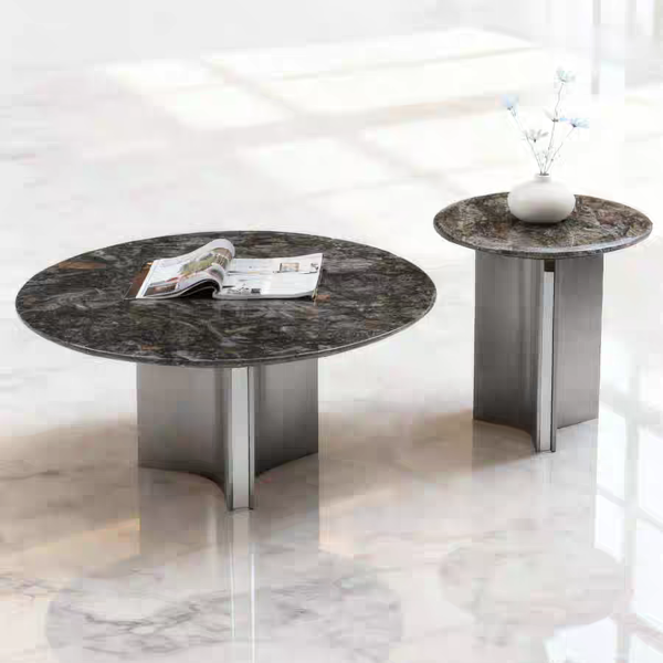 铂金钻天然大理石+底板+不锈钢灰钛拉丝底架
