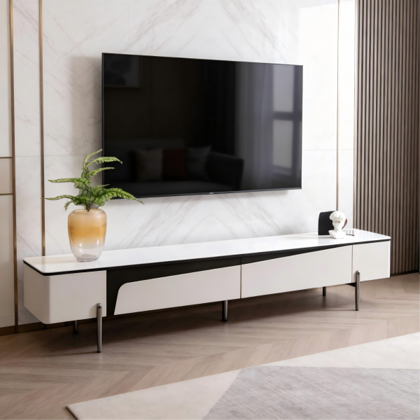 湖光山色微晶石台面+E1级板材贴科技膜柜体+实木抽屉+不锈钢脚