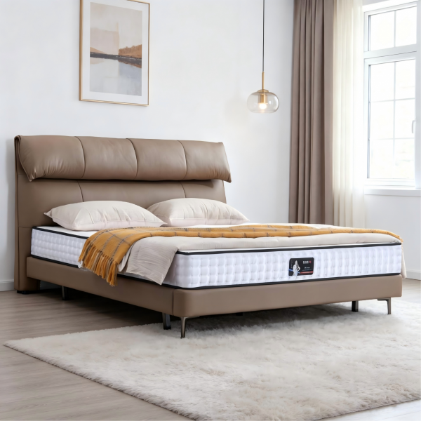 接触面头层真皮+全实木框架+高密度回弹海绵+羽绒靠包+15公分加密钢木排骨架+13公分碳素钢五金脚