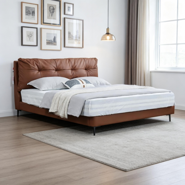 接触面头层真皮+全实木框架+黑色角码+10公分钢木排骨架+13公分五金脚