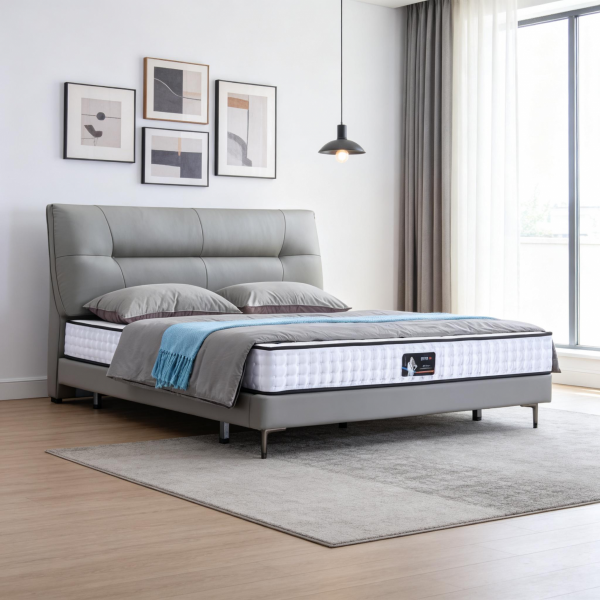 接触面头层真皮+全实木框架+黑色角码+10公分钢木排骨架+13公分五金脚