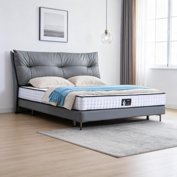 接触面头层真皮+全实木框架+黑色角码+10公分钢木排骨架+13公分五金脚