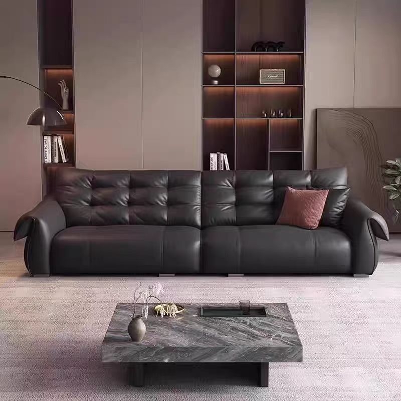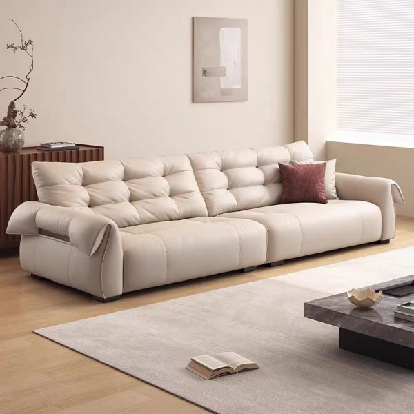 接触面中厚生态真皮+实木内框+高密度海绵+实木脚