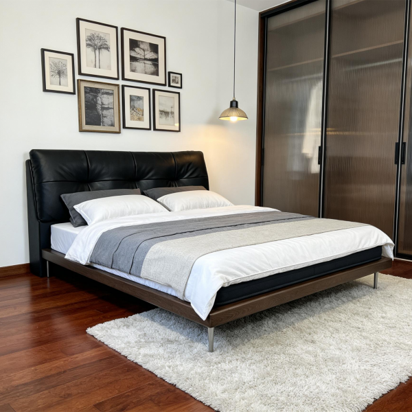 头层牛皮接触面+实木床边+公仔棉软床+10公分钢木排骨架+18公分五金脚