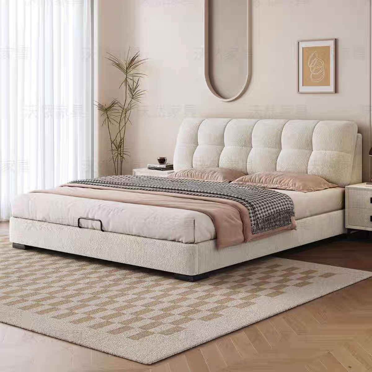 雪尼尔布艺面料+实木内框+高密度海绵+靠包羽绒和公仔棉填充+10公分钢木排骨架+实木脚