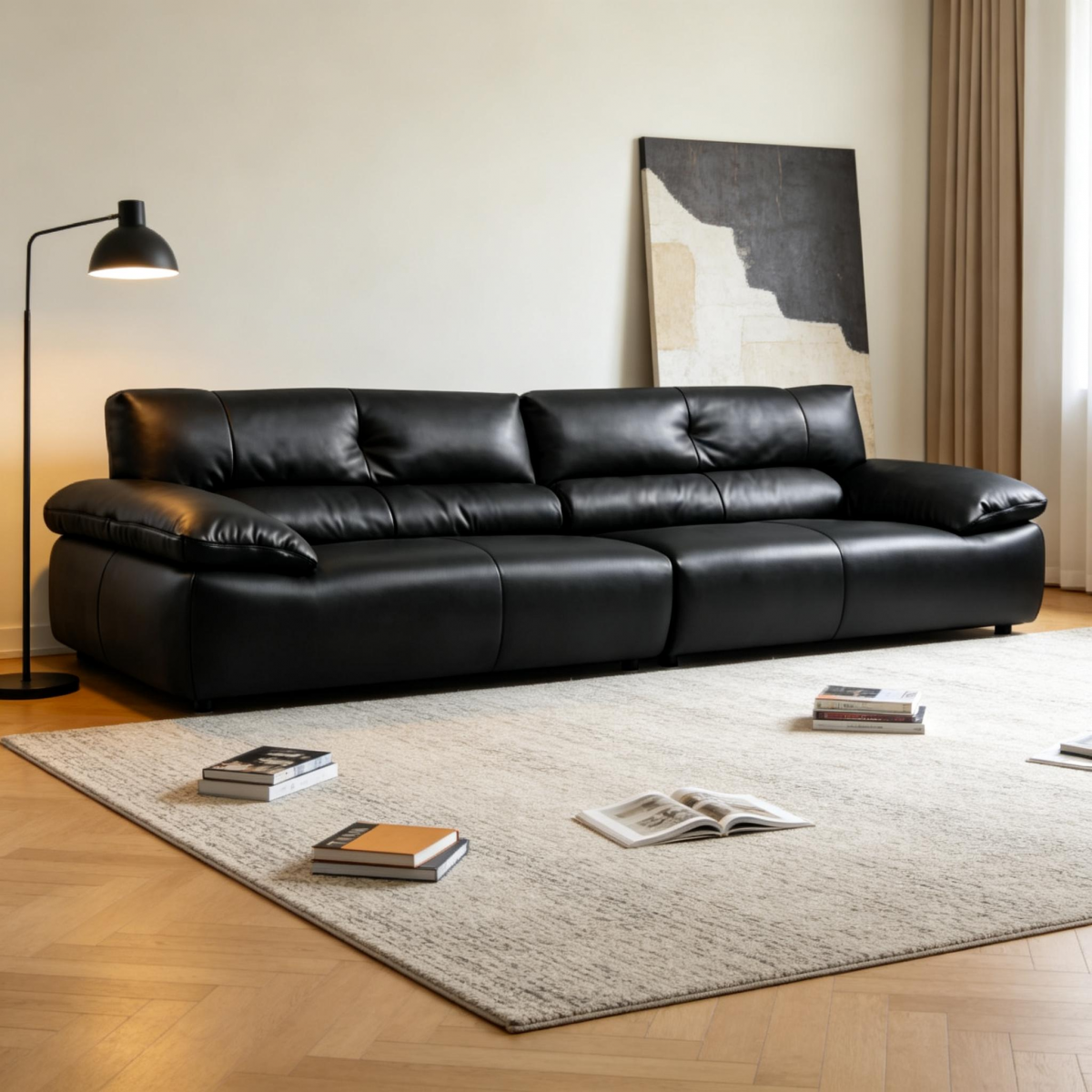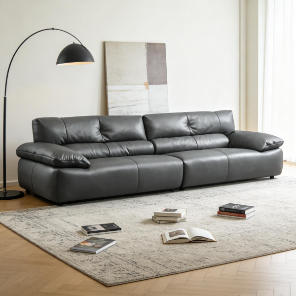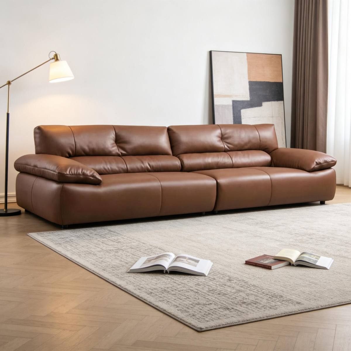 全中厚头层牛皮+高密度回弹海绵+羽绒填充+实木框架+实木脚