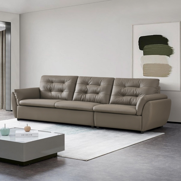 接触面中厚头层真皮+松木框架+无粉高密度回弹海绵+塑钢脚
