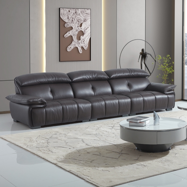 接触面中厚头层真皮+松木框架+无粉高密度回弹海绵+塑钢脚