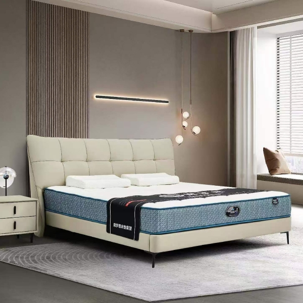 接触面头层黄牛皮+松木框架+无粉高密度回弹海绵+10分钢木排骨架+五金脚