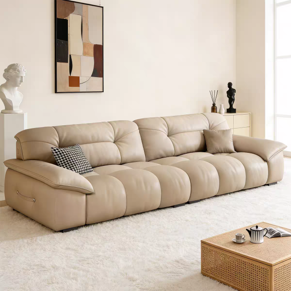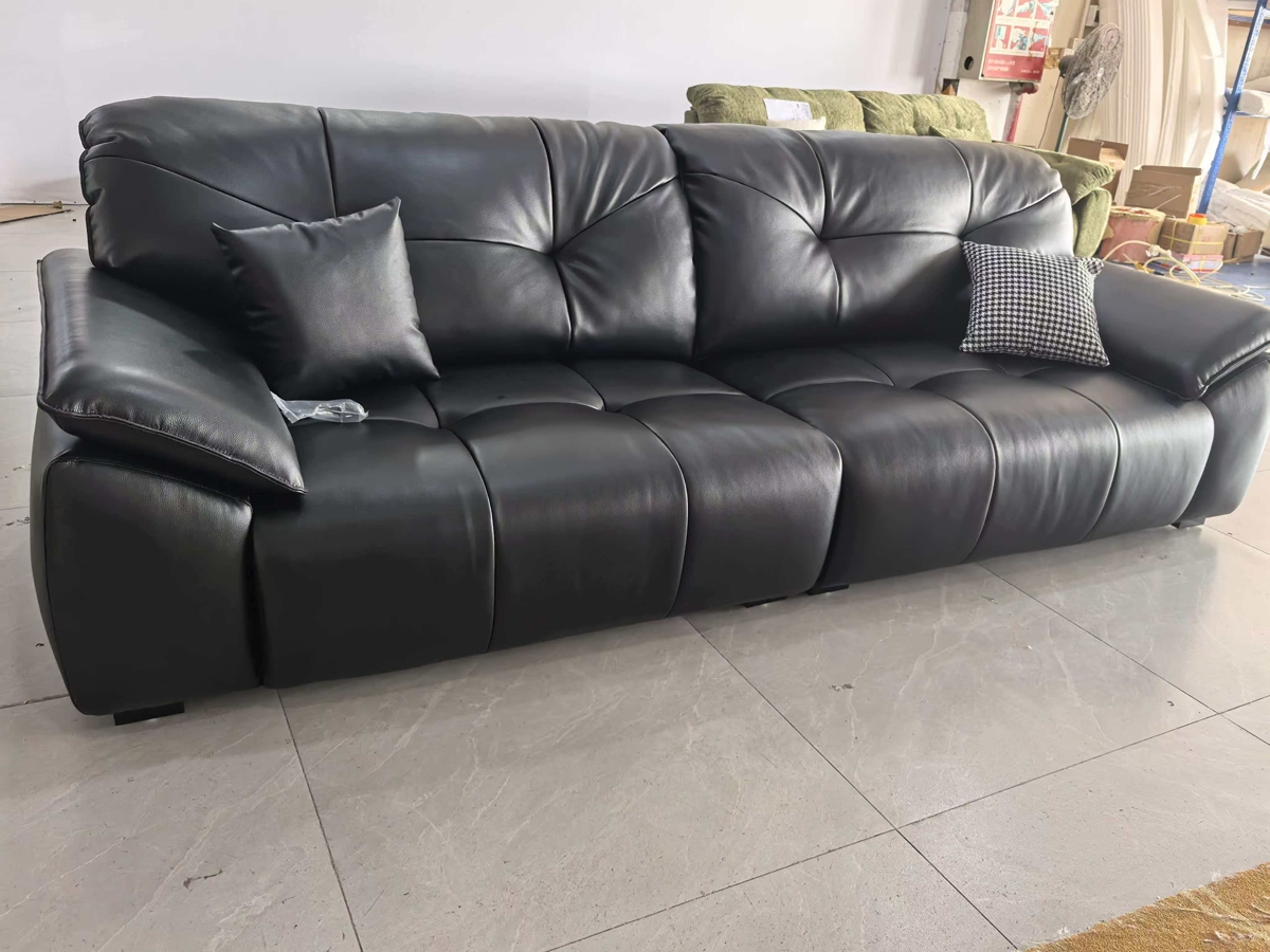 接触面中厚生态真皮+实木内框+高密度海绵+实木脚